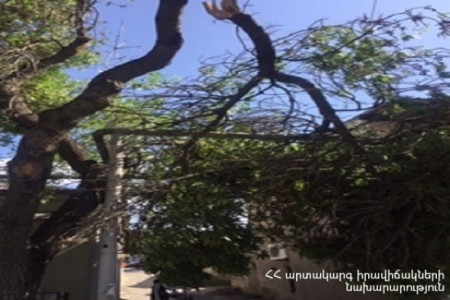 Փրկարարները՝ «Կանաչապատման և շրջակա միջավայրի պահպանության» ՀՈԱԿ-ի աշխատակիցների հետ միասին, ծառի կոտրված հատվածը հեռացրել են անվտանգ տարածք։