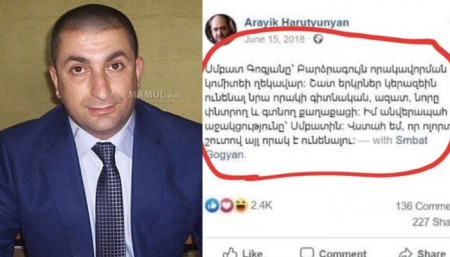 Հ.Գ. Սուպերնախարարի վերաբերմունքը Գոգյանի նկատմամբ և գրառումներ ջնջել-փակելն իր ոճի մեջ է: