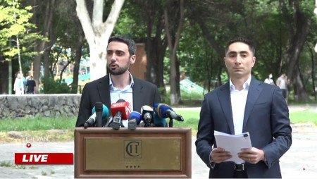 Սունդուկյանի անվան այգում տեղի է ունենում ՀՀ երկրորդ նախագահ Ռոբերտ Քոչարյանի Փաստաբանական թիմի անդամներ Արամ Վարդևանյանի և Սարգիս Գրիգորյանի ճեպազրույցը։