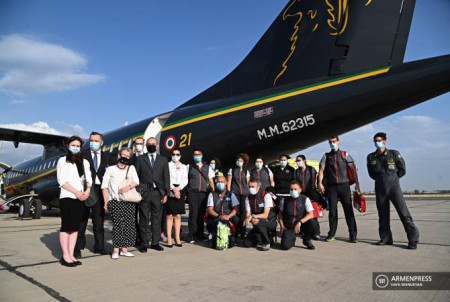 Բժշկական անձնակազմին օդանավակայանում դիմավորել են ՀՀ առողջապահության նախարարի առաջին տեղակալ Անահիտ Ավանեսյանը, արտաքին գործերի նախարարի տեղակալ Ավետ Ադոնցը, Հայաստանում Իտալիայի դեսպան Վինչենցո Դել Մոնակոն, Հայաստանում ԵՄ պատվիրակության ղեկավար Անդրեա Վիկտորինը, ԱԺ Հայաստան-Իտալիա բարեկամական խմբի ղեկավար Մարիա Կարապետյանը: