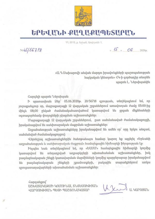 Քաղաքապետարանի պատասխանը՝ ստորև։