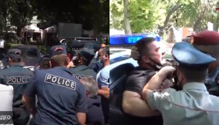 Ոստիկանները բերման ենթարկեցին ԿԲ-ի դիմաց բողոքող ցուցարարներին. Տեսանյութ
