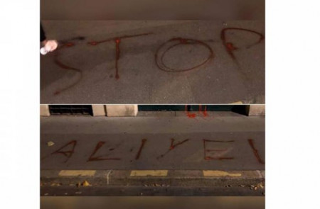 Փարիզում Ադրբեջանի դեսպանատան շենքի մուտքը ներկվել է «Ո՛չ պատերազմին» և «Կանգնեցրե՛ք Ալիևին» գրություններով: Այս մասին հաղորդում է «Զարթոնք Մեդիա»-ն: