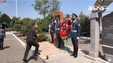 Ոստիկանության ղեկավար կազմը հարգանքի տուրք է մատուցում ՊՊԾ գնդում զոհվածների հիշատակին. Տեսանյութ