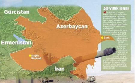 Թուրքական Diriliş Postası թերթի շապիկը՝ «Ղարաբաղ կամ մահ» վերտառությամբ։ Քարտեզում Արցախից բացի ոչ միայն Սյունիքն է Ադրբեջանի կազմում, այլ գրեթե ողջ Վայոց Ձորը՝ ներառյալ Եղեգնաձորը, Վայքն ու Ջերմուկը։