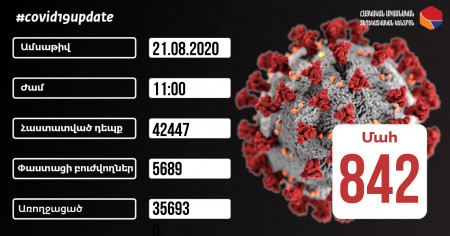 Ինչպես տեղեկացնում է ՀՀ ԱՆ հիվանդությունների վերահսկման և կանխարգելման ազգային կենտրոնը, մեկ օրում կորոնավիրուսի հետևանքով մահացել է 6 քաղաքացի, մահացածների թիվը 842 է: