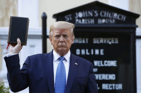 Հունիսին երկրում աֆրոամերիկացի Ջորջ Ֆլոյդի մահից հետո սկսված անկարգությունների օրերին Թրամփը թիկնապահների և լրագրողների ուղեկցությամբ Աստվածաշունչը ձեռքին այցելել էր Սուրբ Հովհաննես եկեղեցի, որն ավերվել էր անկարգությունների ընթացքում։