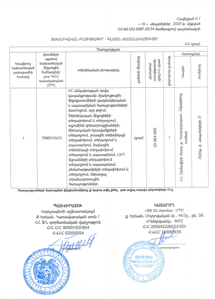 «Թի Էն Սաունդ» ՍՊԸ (մատուցած ծառայությունների դիմաց վճարվել է 59,064,800 դրամ):