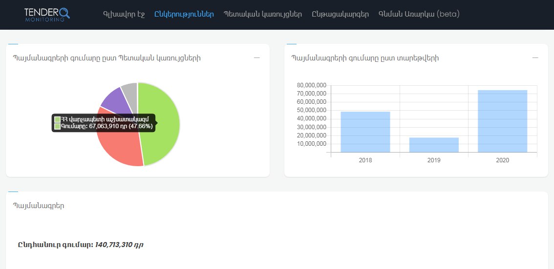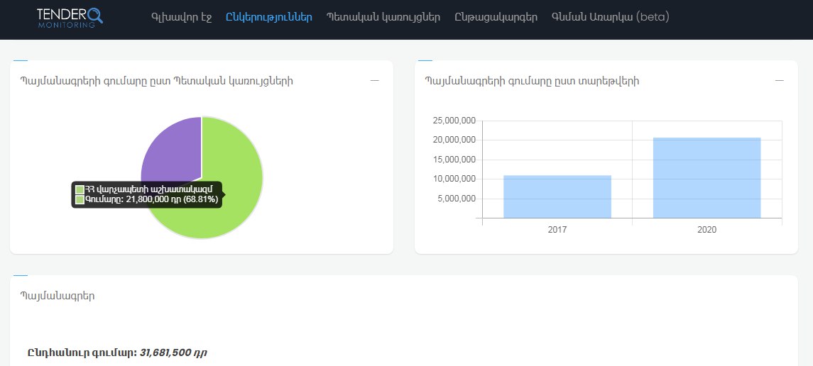 Պետական տարբեր կառույցների հետ կնքած տարբեր պայմանագրերից ստացած 31,681,500 դրամի 68.81%-ը կամ 21,800,000 դրամը «Հոլիդեյ Դիզայն» ՍՊԸ-ն ստացել է վարչապետի աշխատակազմից: