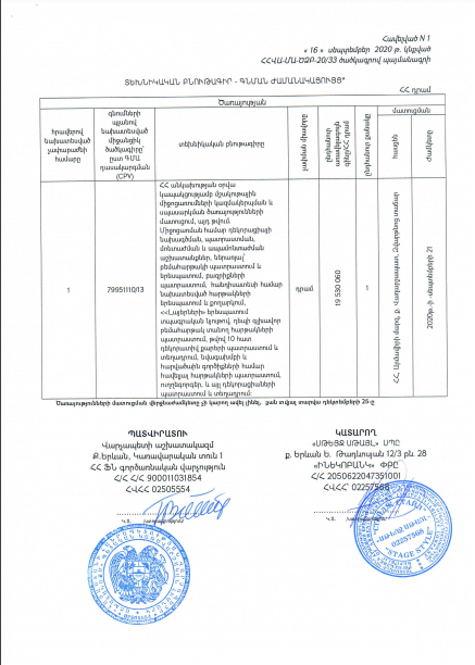 «Սթեյջ Սթայլ» ՍՊԸ-ին (մատուցած ծառայությունների դիմաց վճարվել է 19,530,060 դրամ):