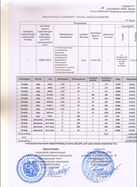 «Արթուր Մանուկյան» ԱՁ (մատուցած ծառայությունների դիմաց վճարվել է 43,422,225 դրամ):