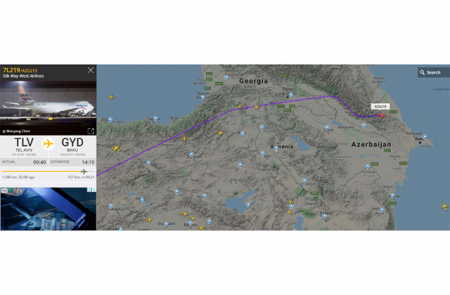 Flightradar24 բջջային հավելածի միջոցով հայտնի է դարձել, որ Իսրայելի մայրաքաղաք Թել Ավիվից դեպի Բաքու է ուղևորվում ադրբեջանական Silk Way West Airlines–ին պատկանող Boeing 747-4H6F (7L219/AZG219) բեռնատար ինքնաթիռը։ Այս մասին գրում է yerkir.am-ը։