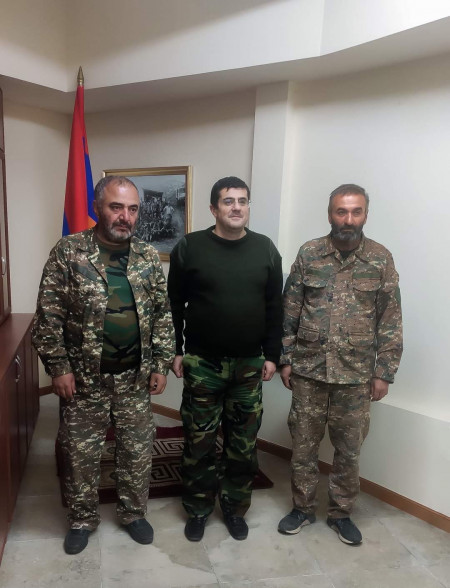 Որոշմանս համաձայն՝ Հայրենիքի պաշտպանության ու անվտանգության ապահովման գործում Արցախի Հանրապետությանը մատուցած բացառիկ ծառայությունների, ցուցաբերած քաջության ու անձնական արիության համար Սուրեն Բարսեղյանին (լուսանկարում ինձնից աջ) կշնորհվի «Արցախի հերոս» բարձրագույն կոչում, իսկ նրա տեղակալներ Արայիկ Գալստյանին (լուսանկարում ինձնից ձախ) և Անդրանիկ Մկրտչյանին` «Մարտական խաչ» առաջին աստիճանի շքանշաններ: