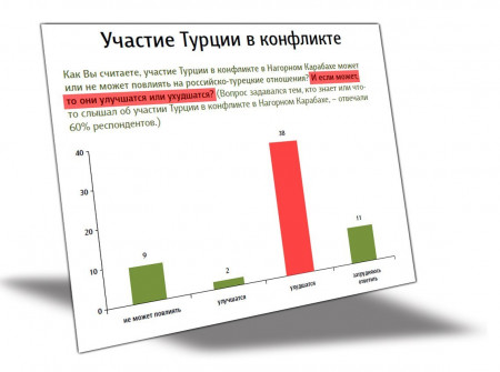 Ռուսաստանցիների 2%-ը գտնում է, որ հարաբերությունները կլավանան, 9%-ը՝ ոչ մի ազդեցություն չի լինի, և հիմնադրամի հարցվածների 38%-ը նշում է, որ Արցախի պատճառով կվատանան Ռուսաստանի և Թուրքիայի հարաբերությունները: Փոխանցում է «Մոսկովսկի կոմսոմոլեց»-ը: