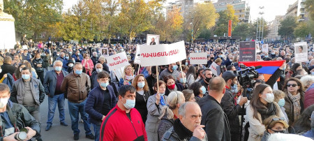 Վարչապետի հրաժարականի պահանջով՝ քաղաքացիներն ու քաղաքական ուժերը հանրահավաք են անում Ազատության հրապարակում։ Հանրահավաքի մասնակիցների թվում են Երևանում ապաստան գտած արցախցիները, պատերազմում հարազատներ ու ընկերներ կորցրած քաղաքացիներն ու Արցախի ճակատագրով մտահոգվածները։