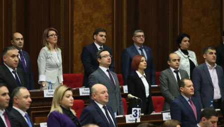 Նկատենք նաեւ, որ բացի այս որոշման նախագիծը, նույն խմբակցությունը դեռեւս նոյեմբերի 11-ին ներկայացրել էր նախագիծ՝ տեղծված իրավիճակն ու դրանից դուրս գալու ելքերը, ինչպես նաեւ Հայաստանի Հանրապետության վարչապետ Նիկոլ Փաշինյանի, Ադրբեջանի Հանրապետության նախագահ Իլհամ Ալիեւի եւ Ռուսաստանի Դաշնության նախագահ Վլադիմիր Պուտինի կողմից 2020 թվականի նոյեմբերի 09-ին ստորագրված հայտարարության իրավաչափությունը քննարկելու վերաբերյալ: Սակայն այդ հարցը քննարկելու համար այդպես էլ արտահերթ նիստ չգումարվեց»: