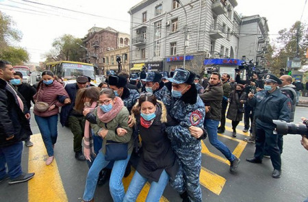 Փաշինյանի հրաժարականի պահանջով փողոցները փակող քաղաքացիներին ոստիկանները հրելով հեռացնում են. Տեսանյութ