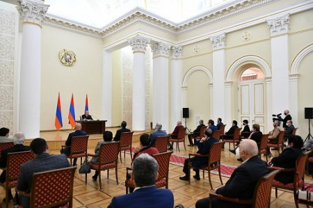 Ավելի քան երկու ժամ տևած զրուցի ընթացքում նախագահ Սարգսյանը և հանդիպման մասնակիցները մտքեր են փոխանակել երկրում ստեղծված իրավիճակի, ծառացած բազմաթիվ դժվարությունների՝ տնտեսական, ներքաղաքական, բարոյահոգեբանական, կորոնավիրուսային, առկա ճգնաժամը հաղթահարելու հնարավորությունների մասին: Ընդգծվել է երկրում կայունության պահպանման կարևորությունը, պետական ինստիտուտների, կառույցների համակարգային կայացվածության անհրաժեշտությունը: Անդրադարձ է կատարվել հատկապես սոցիալական ցանցերում տիրող անհանդուրժողականությանը և կեղծ լուրերի ու կեղծ օգտատերերի վտանգավոր առատությանը, ժողովրդին պառակտելու, հասարակության բևեռացվածության անթույլատրելիությանը:
