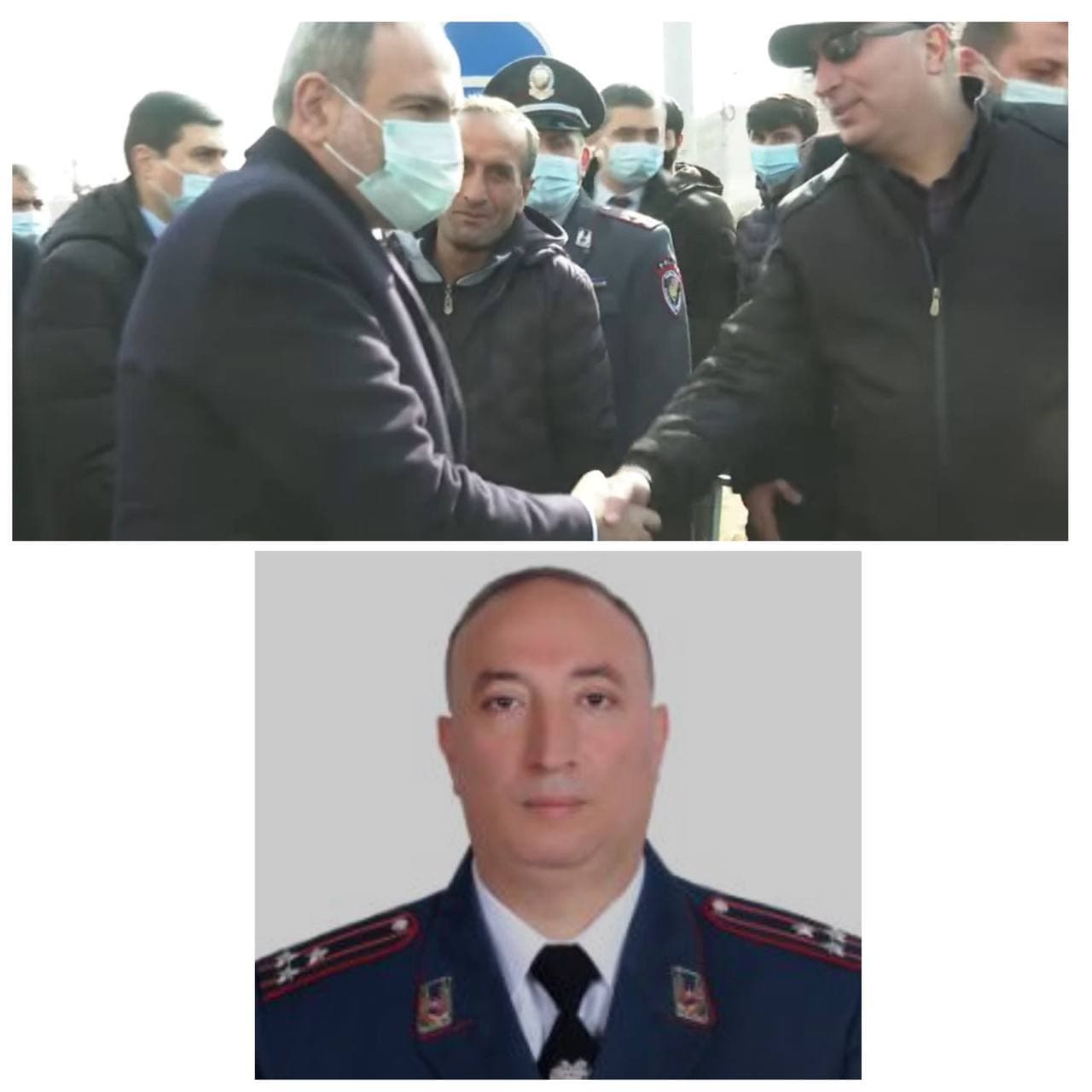 Ոստիկանության Արտաշատի բաժնի պետ Դավիթ Պետրոսյանը մուգ ակնոցով ու գլխարկով «պատահական անցորդի» անվան տակ երեկ բարևում էր Փաշինյանին