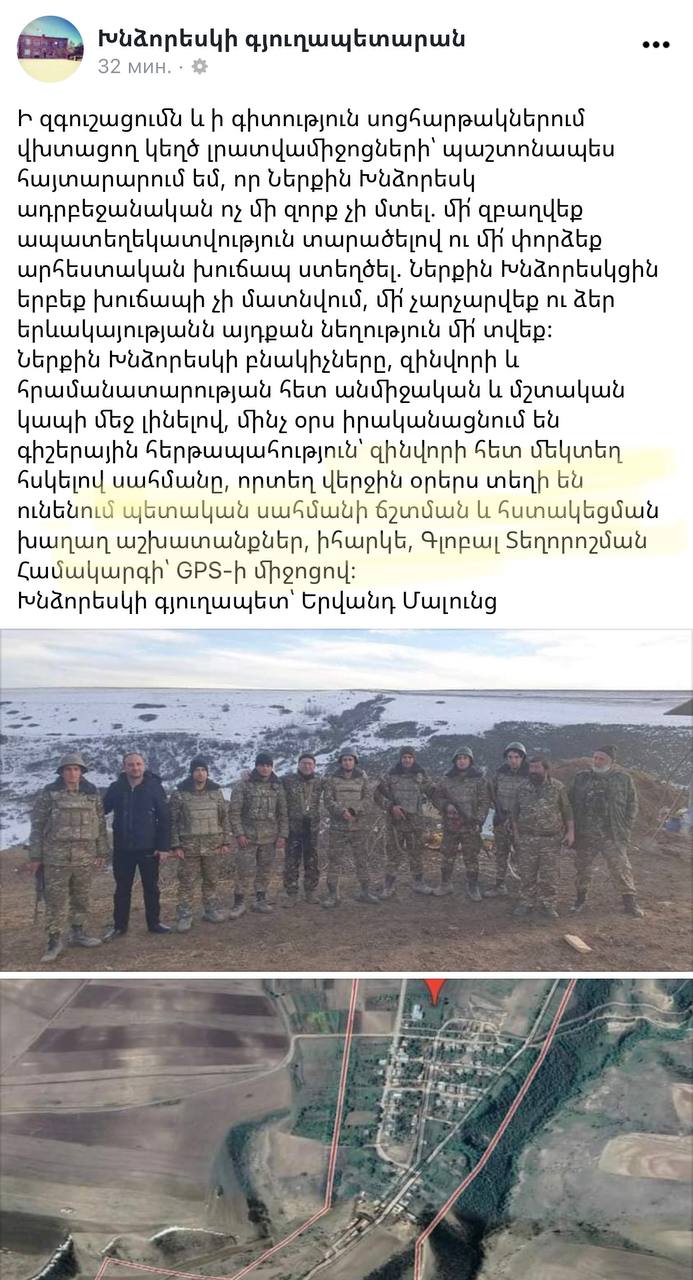 Ներքին Խնձորեսկի գյուղապետը հաստատել է Mediaport-ի տեղեկությունը. համայնքում տեղի է ունենում «պետական սահմանի ճշտում»՝ GPS-ի միջոցով: