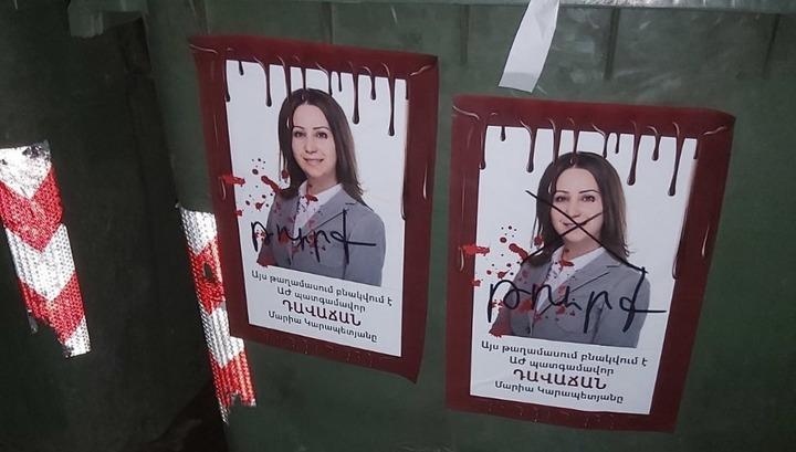 Մի խումբ քաղաքացիներ ակցիա են իրականացրել ՀՀ Ազգային ժողովի իմքայլական պատգամավոր Մարիա Կարապետյանի բնակավայրի տարածքում՝ տարբեր տեղերում փակցնելով նրա լուսանկարը՝ «Այս թաղամասում բնակվում է ԱԺ պատգամավոր, դավաճան Մարիա Կարապետյանը» մակագրությամբ: