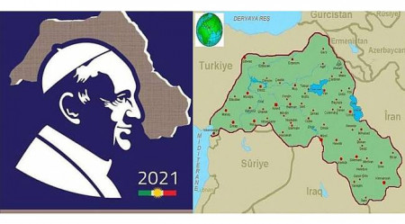 Այդ նամականիշի վրա պատկերված է Հռոմի պապ Ֆրանցիսկոսը, իսկ գլխավերևում՝ «Մեծ Քուրդիստան» աշխարհաքաղաքական նախագծի քարտեզներից մեկը: