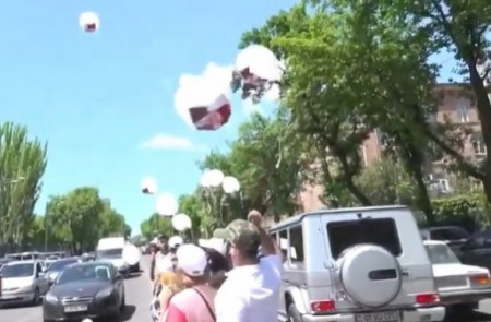 Воздушные шары с лицом Пашиняна: акция у парламента (видео)