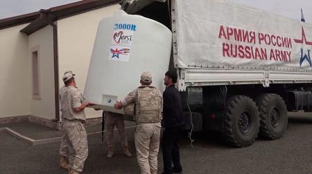 Ранее военнослужащие гуманитарного центра миротворческого контингента совершили более 30 рейсов водовозов для обеспечения более 200-ми тоннами питьевой воды более 1,5 тыс. жителей г. Степанакерта.