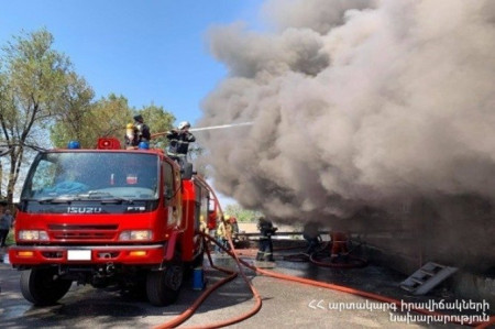 Крупный пожар полыхает на одном из складов Еревана: на месте работают 6 боевых расчетов