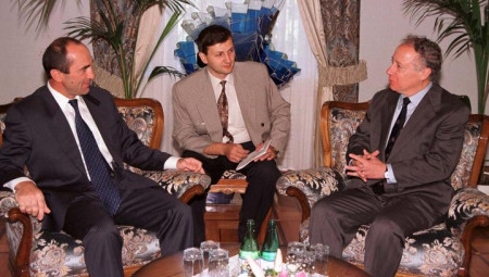 На этом фото второй посол США в Армении Питер Томсен и президент Роберт Кочарян. Посол Томсен возглавлял посольство США с 6 сентября 1995 года по 6 сентября 1998 г..