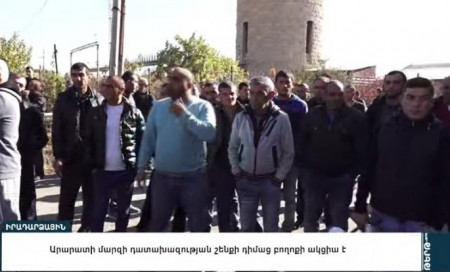 Перед зданием прокуратуры Араратской области Армении с утра 4 ноября проходит акция протеста, организованная жителями села Аревшат.
