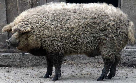 Когда друг с другом встречаются «провинциальный» кабан и гордая домашняя свинья, получается венгерская мангалица, которую условно можно назвать овцесвиньей.