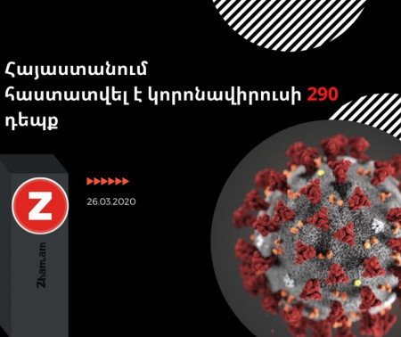 По состоянию на 10:00 26 марта число подтвержденных случаев коронавируса в Армении достигло 290. Результаты тестов 1440 человек отрицательные, от коронавирусного заболевания выздоровели 16 граждан, из изоляции вышли 88. На данный момент на фактическом лечении находятся 272 человека.