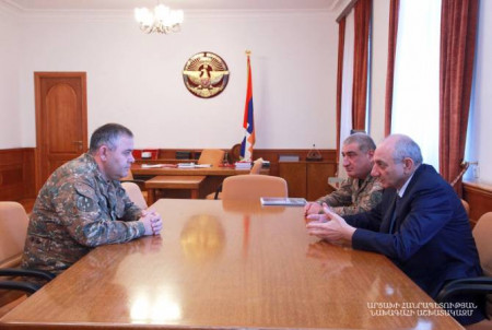 12 мая президент Республики Арцах Бако Саакян принял начальника Генштаба Вооруженных сил Республики Армения Артака Давтяна.