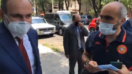 Никол Пашинян раздает прохожим медицинские маски (видео)