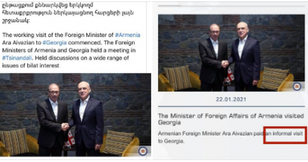 Встреча глав МИД Армении и Грузии: грузинская сторона сообщает о неофициальном, а армянская сторона о рабочем визите